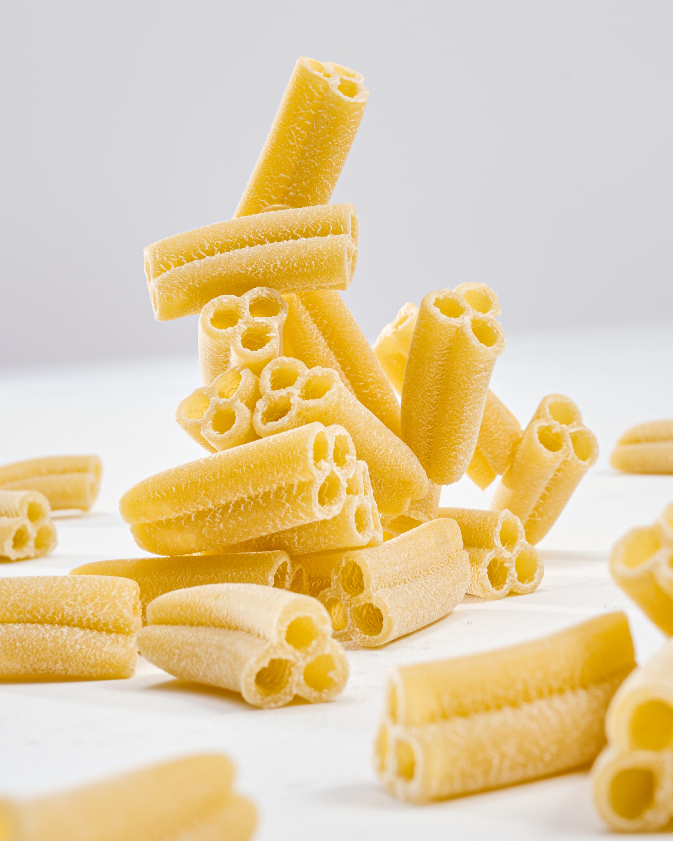 dies which leaves a rough surface to better soak up sauce.